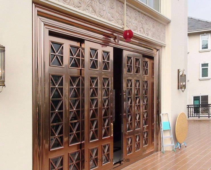 特殊加工:针对室外淋雨,为铜门做更为耐酸耐碱的特殊处理