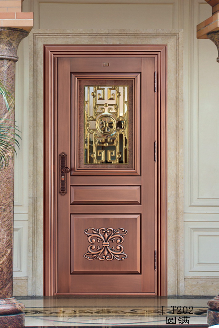 铜门产品材质:钢质内胆,外层为T2洛阳紫铜板