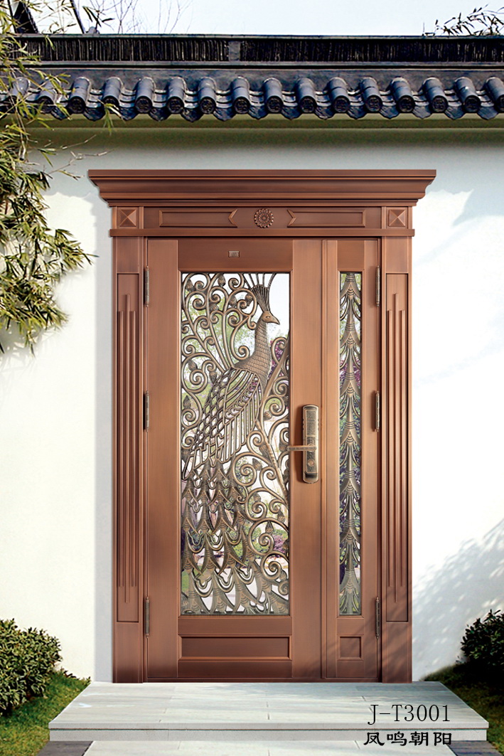 铜门产品材质:钢质内胆,外层为T2洛阳紫铜板